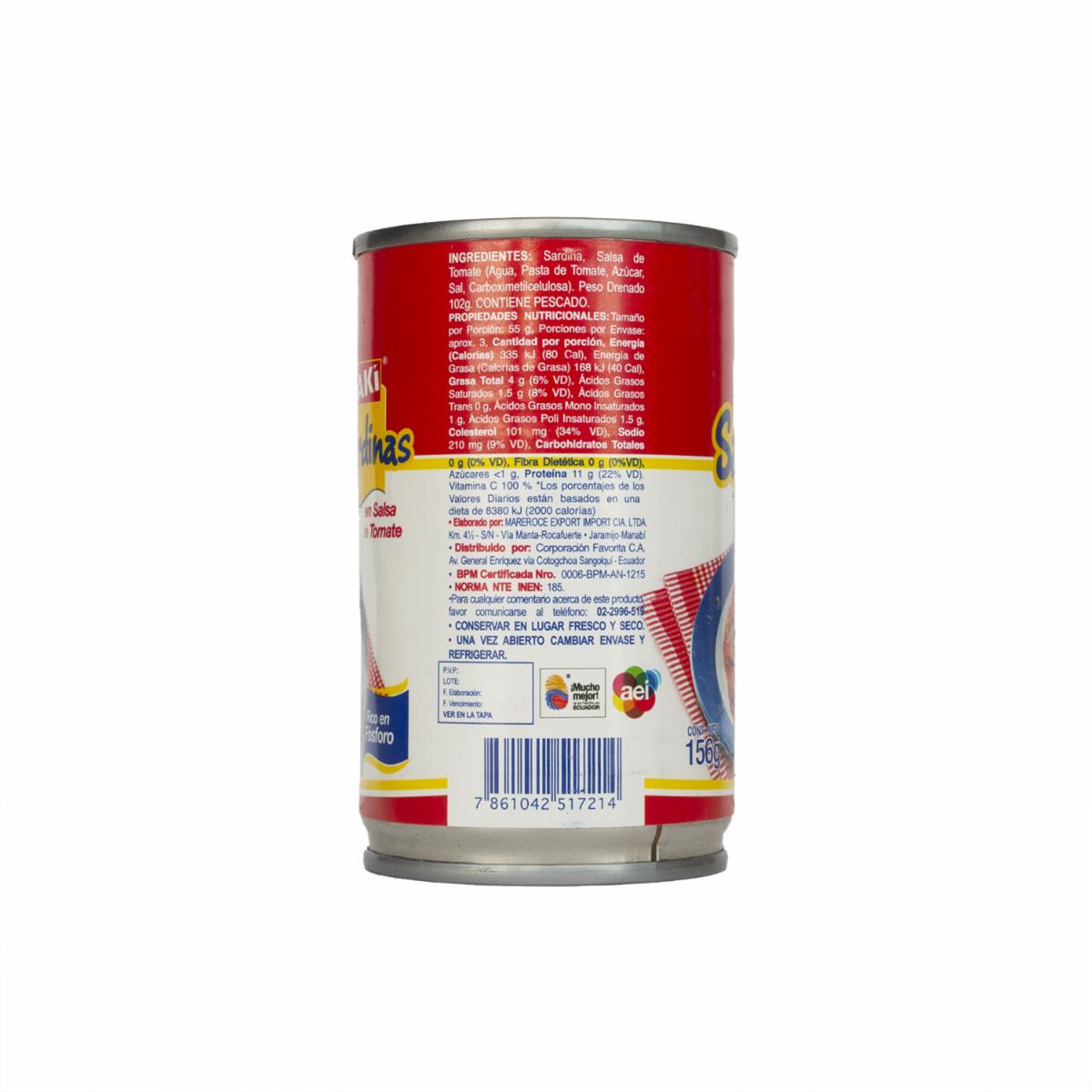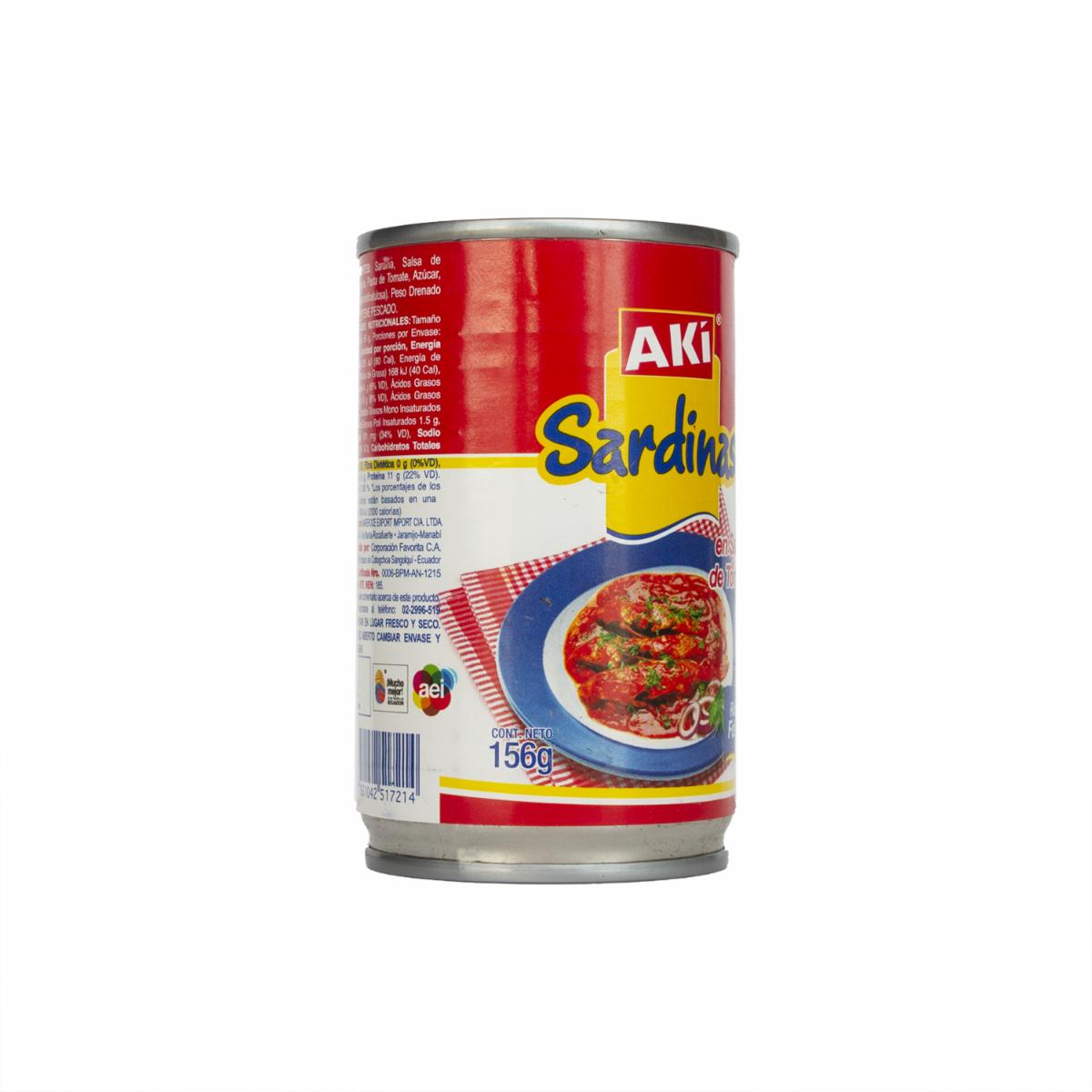 - Sardinas en Salsa de Tomate Aki esta elaborado con sardina, Salsa de Tomate (Agua, Pasta de Tomate,