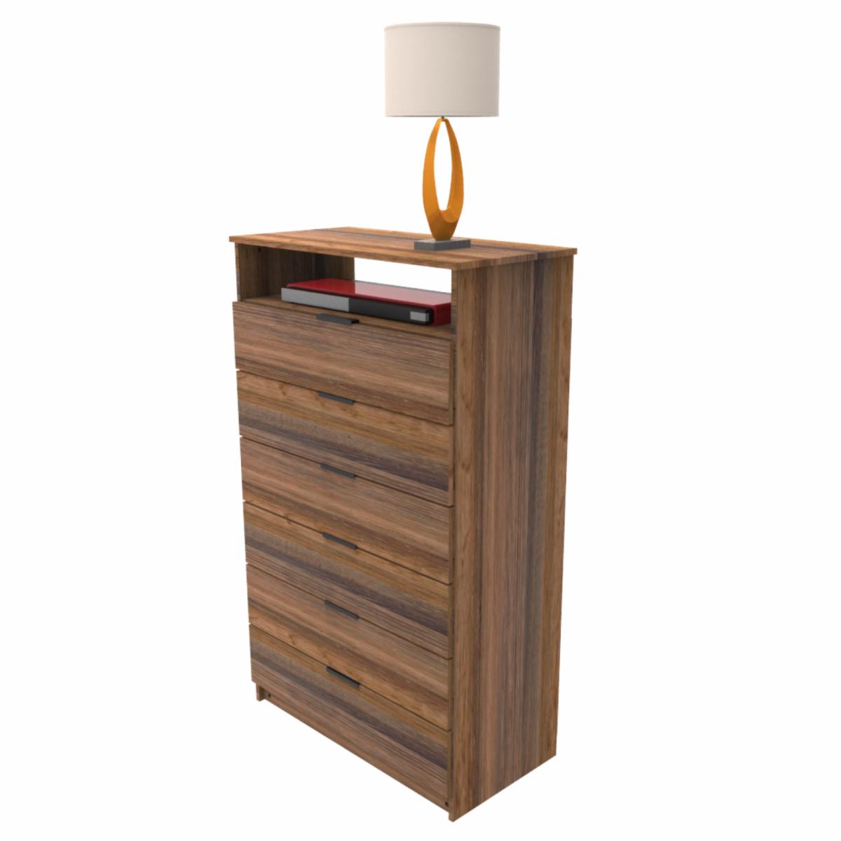 Semanero Hefestos Nuez 6 Cajones 1 Repisa MUEBLE FÁCIL