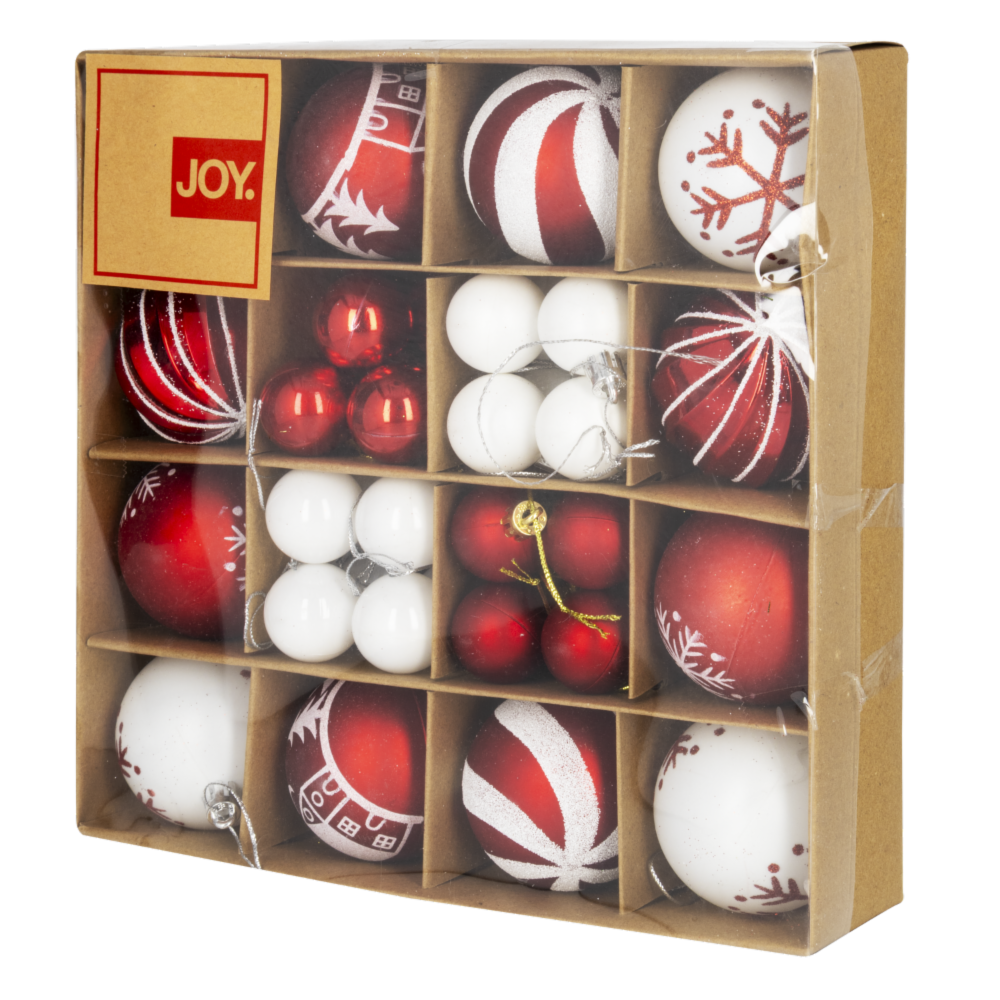 Set Bombillos Navideños Rojo/Blanco Decorado 6Cm JOY 44 Piezas