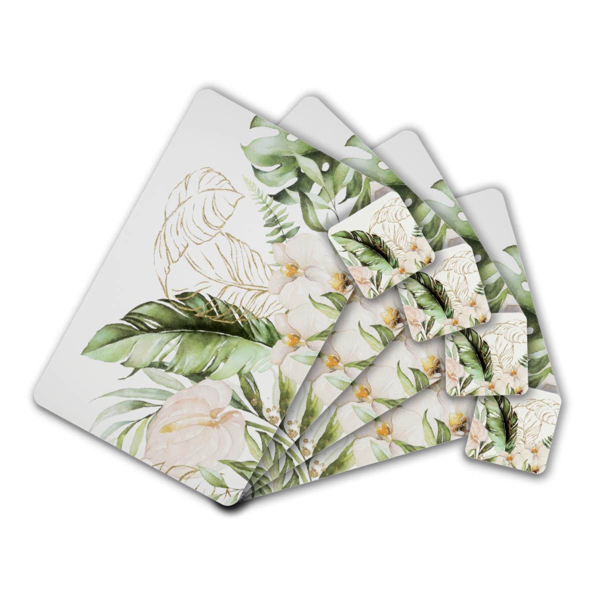 Set De Individuales Ramas Tropicales Con Portavasos FREE HOME X 4 Uds