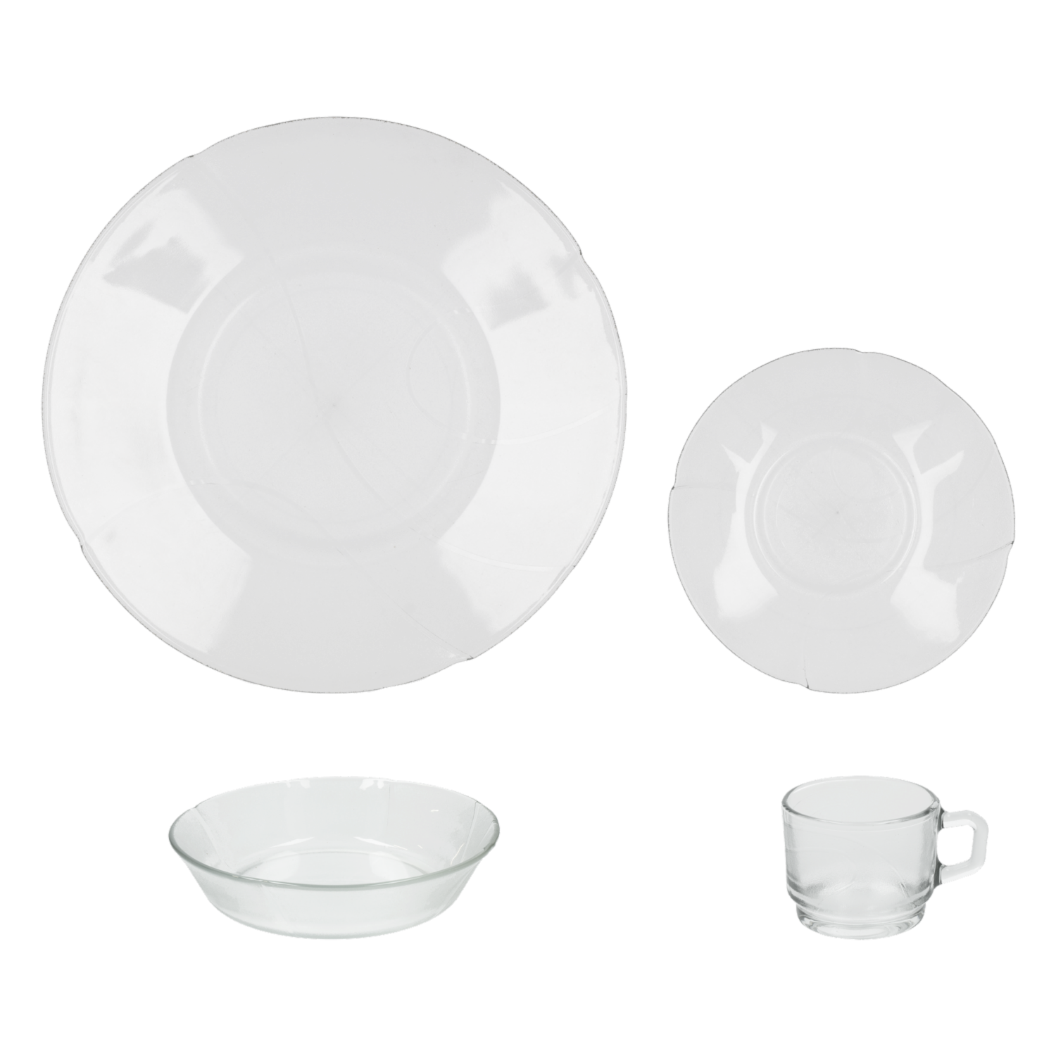 - Este set completo de vajilla transparente es perfecto para cualquier ocasión. Ya sea para un desayuno, una cena especial o un momento en familia, su diseño elegante y funcional se adapta a todo tipo de preparaciones. Con piezas duraderas y fáciles de limpiar, este set es ideal para el uso diario y para ocasiones especiales