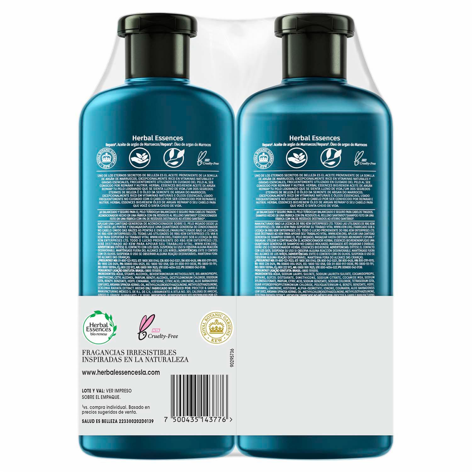 Shampoo + Acondicionador Herbal Biorenew Aceite Argán HERBAL ESSENCES 2 X 525 Ml