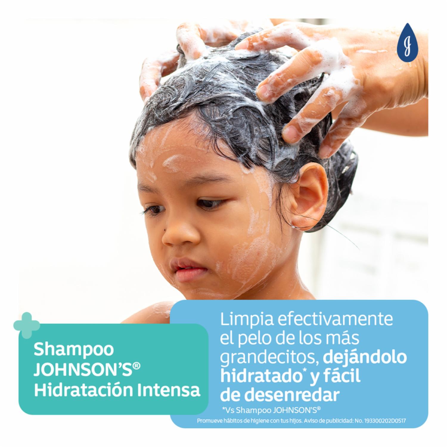 - Shampoo JOHNSONS® Hidratación Intensa deja el pelo hidratado y fácil de desenredar gracias a su fórmula con 3 veces más agentes acondicionadores*. Pelo suave con menos enredos