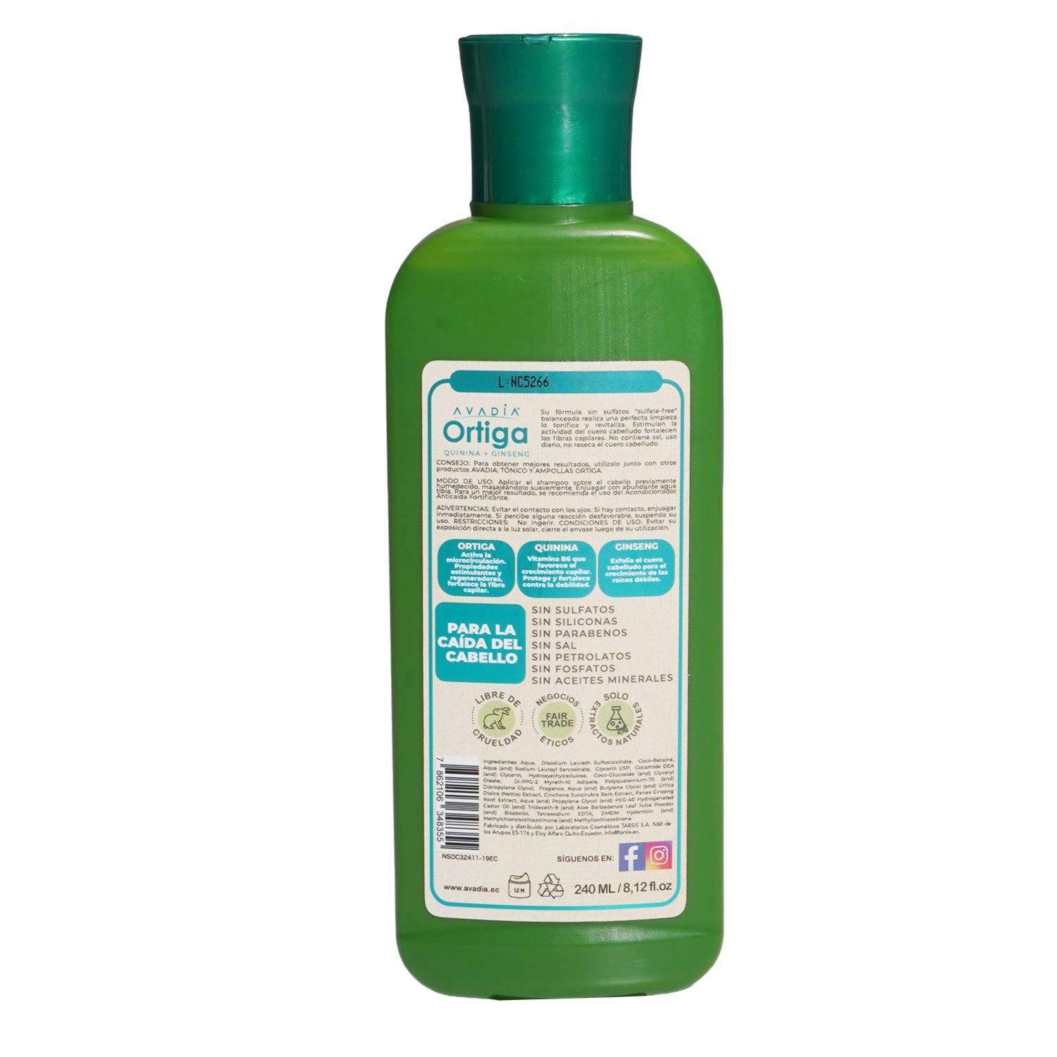 Shampoo De Cabello De Ortiga Quinina + Ginseng AVADÍA 240 Ml