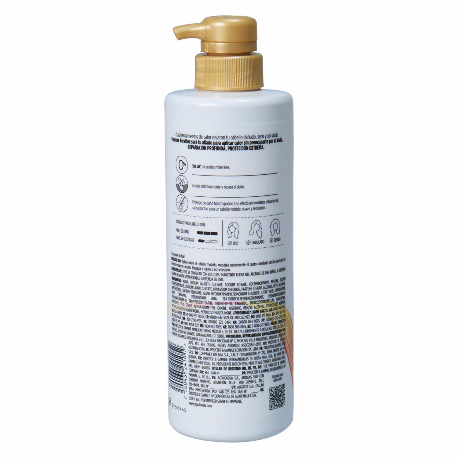 • Características - Fórmula sin sal ni aceites minerales - Enriquecido con queratina y aminoácidos - Repara y fortalece el cabello dañado - Aroma fresco y agradable