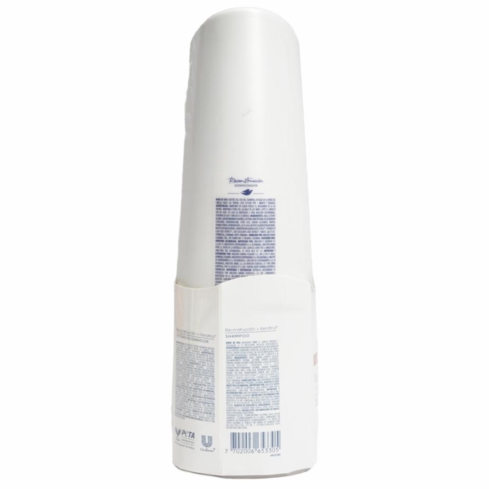 El pack de shampoo y acondicionador Reconstrucción + Keratina limpia y nutre tu cabello mientras repara daños y fortalece la fibra capilar. Su fórmula con keratina aporta suavidad, brillo y resistencia, dejando tu melena saludable, manejable y llena de vida en cada lavado