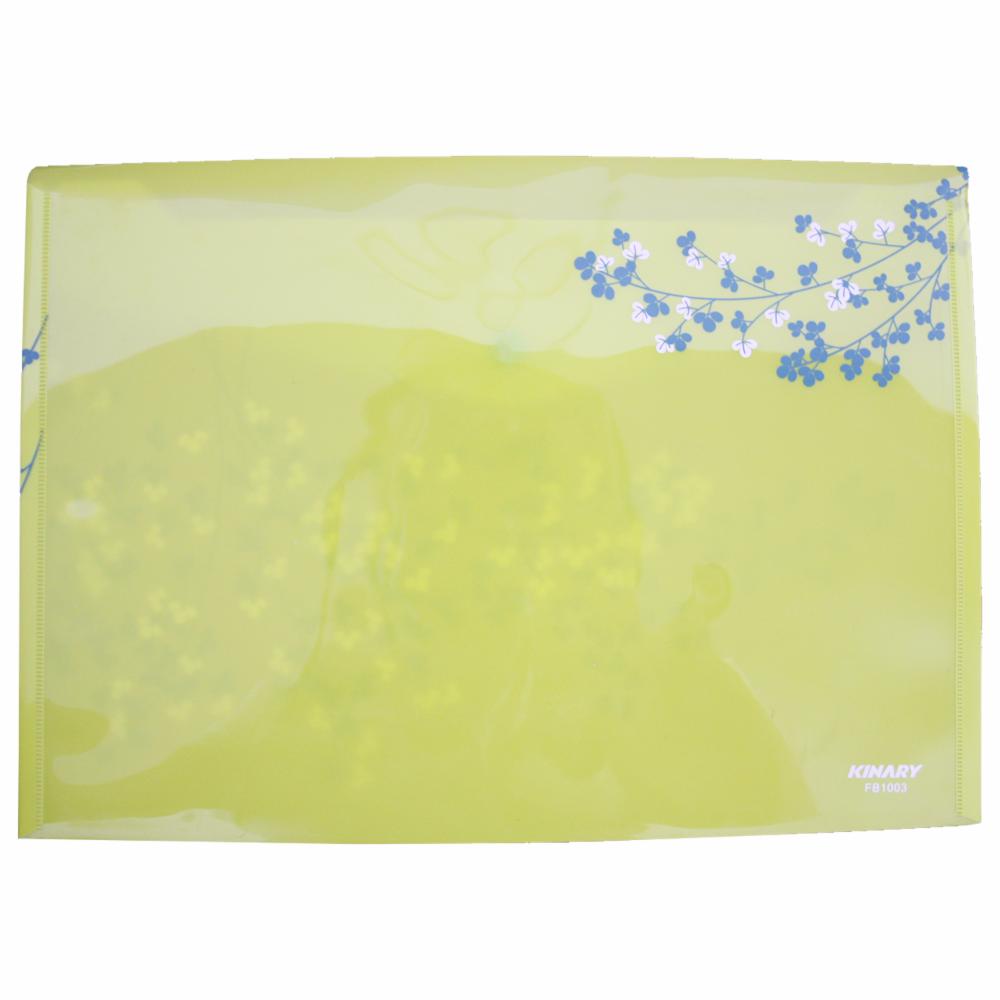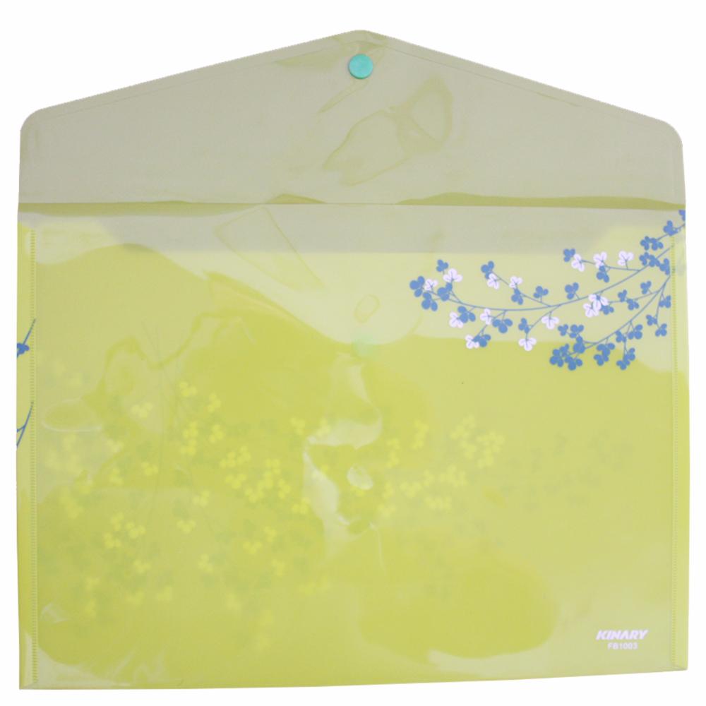Sobre plástico tamaño A4 con impresion floral y broche