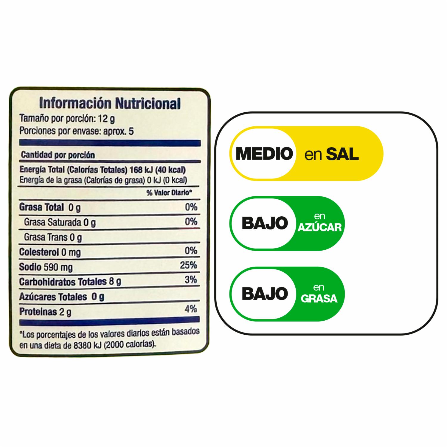 Medio en Sal, Bajo en azucar, Bajo en grasa