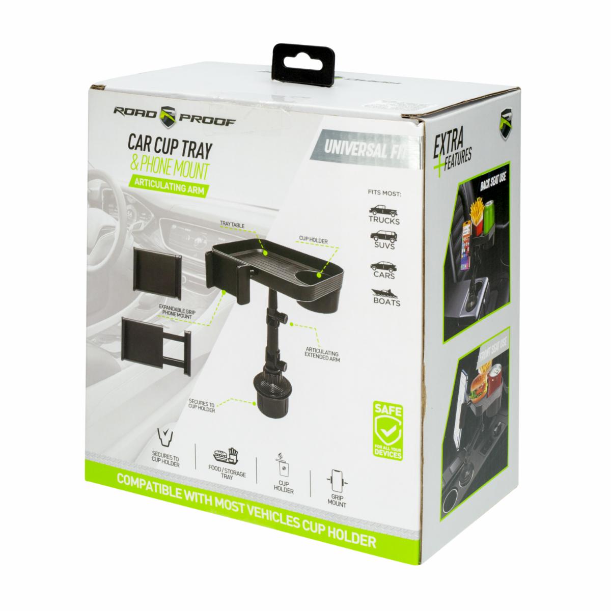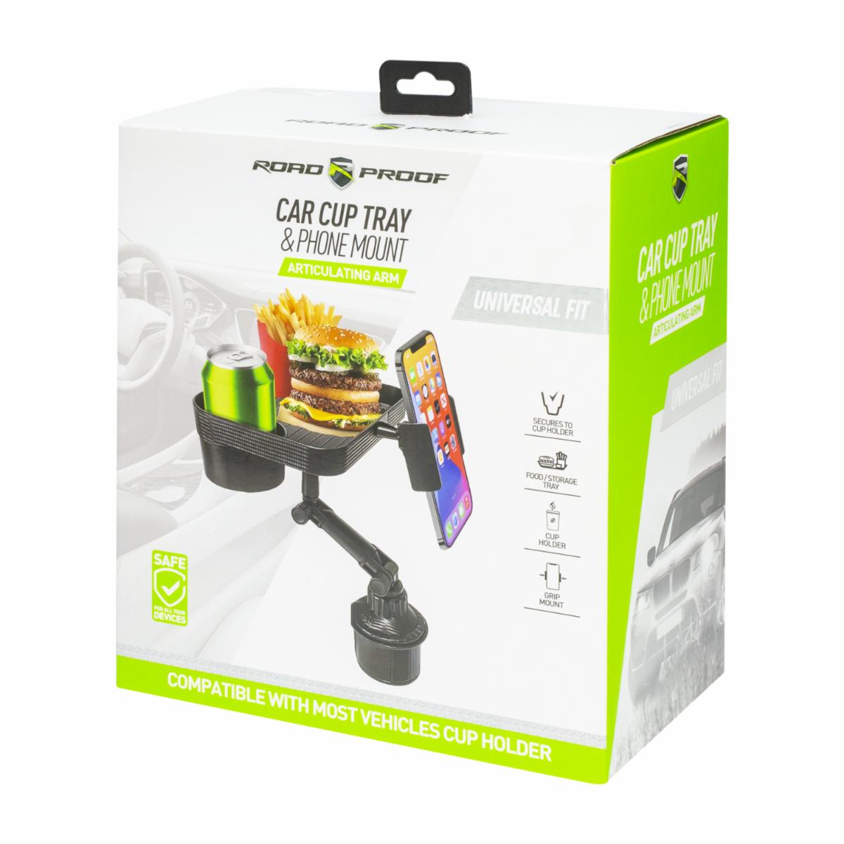- El Soporte Bandeja para Teléfono y Taza ROADPROOF es un accesorio multifuncional ideal para mantener tus objetos organizados y al alcance mientras conduces. Este soporte cuenta con una bandeja para colocar tu teléfono móvil y una ranura para tu taza o bebida, permitiéndote disfrutar de tus bebidas favoritas de manera segura mientras conduces