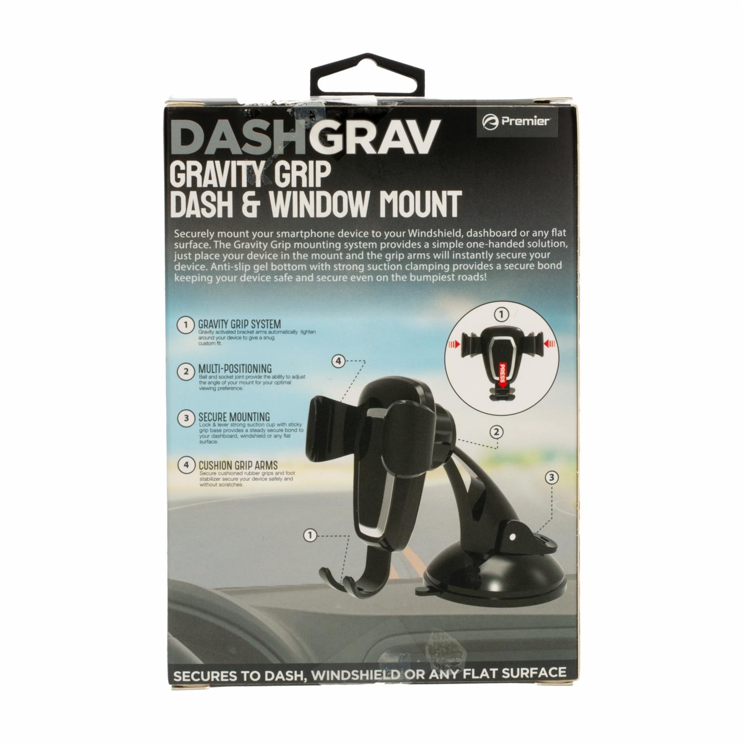 - Monte de forma segura su dispositivo teléfono inteligente en su parabrisas, tablero o cualquier superficie plana. El sistema de montaje Gravity Grip proporciona una solución sencilla con una sola mano: simplemente coloque su dispositivo en el soporte y los brazos de agarre asegurarán su dispositivo instantáneamente