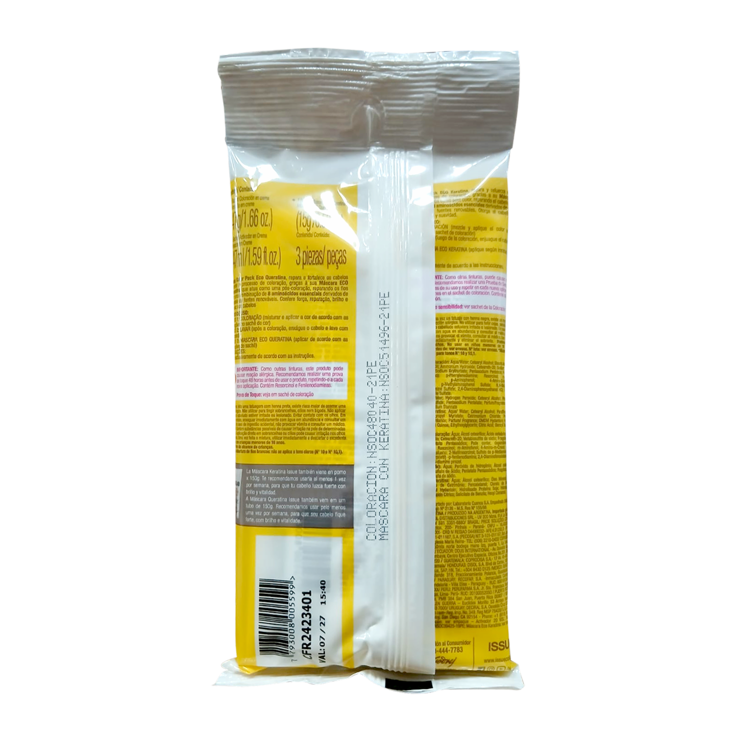 Concepto innovador en coloración, aporta al cabello un color más duradero y brillante. Posee una exclusiva formulación de alta calidad, con Vitamina C que permite preservar los colorantes de una oxidación prematura. Integra todos los componentes necesarios para la aplicación del color que permiten lograr un resultado efectivo y duradero. Contiene: 1 Coloración en Crema (sachet). 1 Activador en crema (peróxido). 1 Juego de Guantes. 1 Sachet de Máscara con Keratina