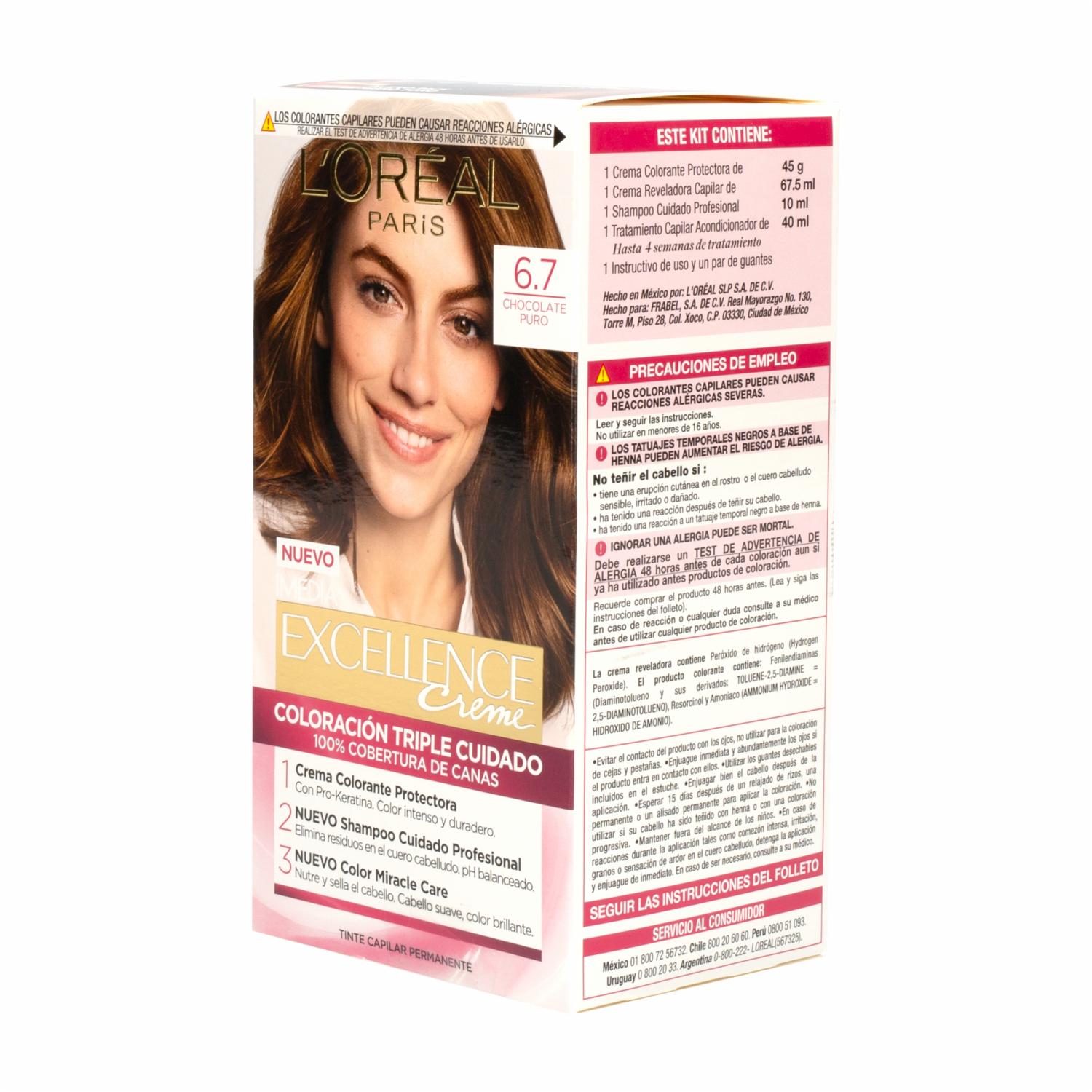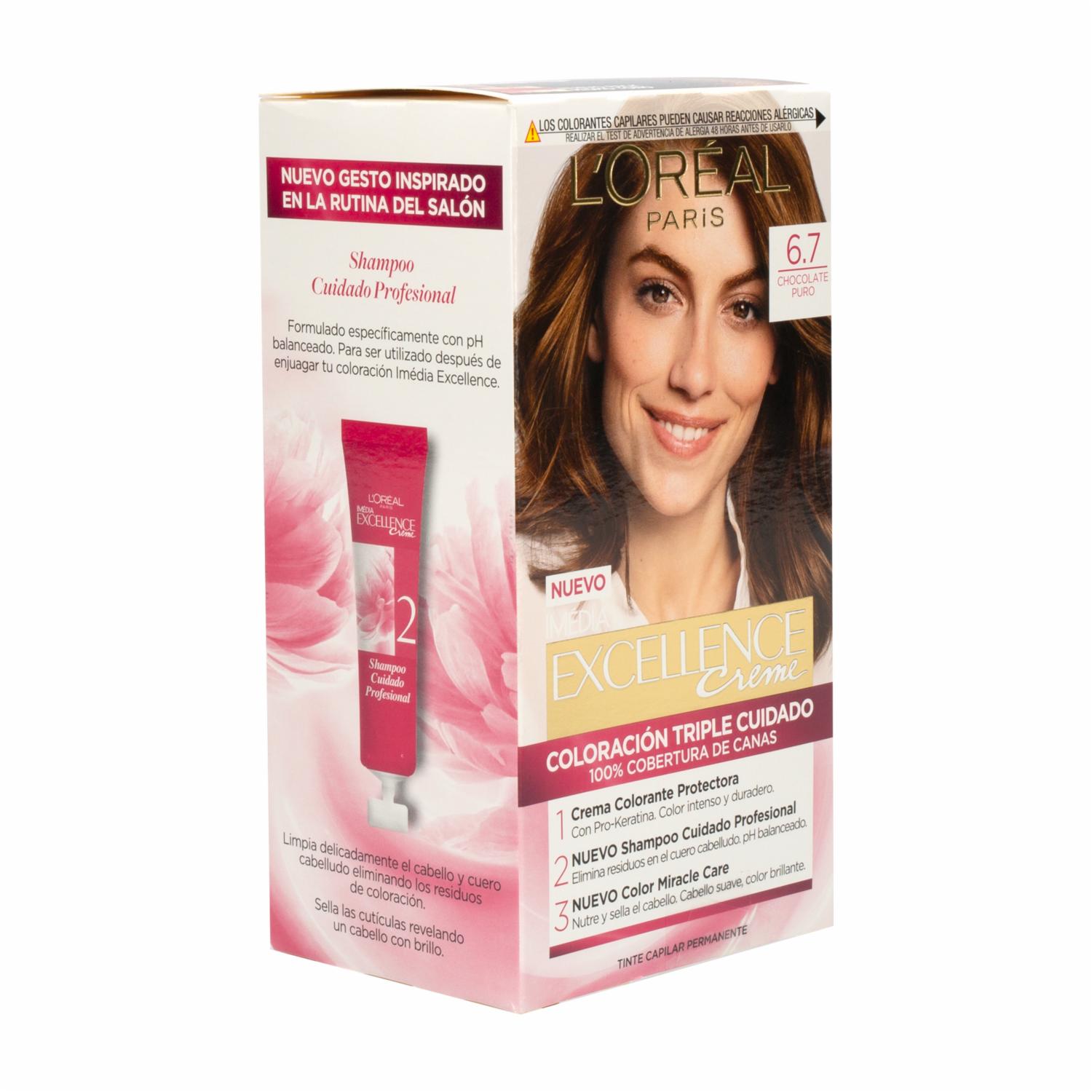 - Sumérgete en la indulgencia con el Tinte para Cabello Tono 6,7 Chocolate Puro de EXCELLENCE L´ORÉAL