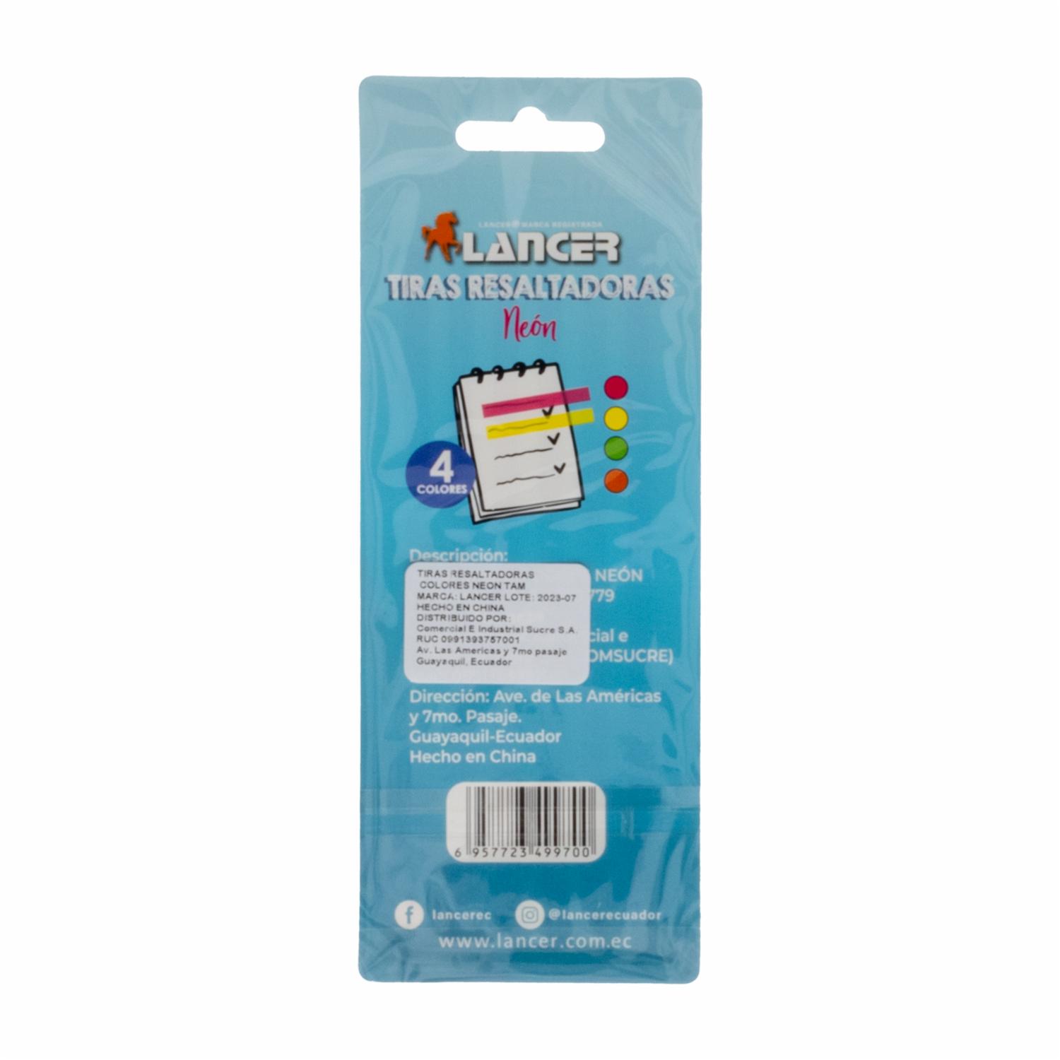 Tiras Resaltadoras De Colores Neón LANCER Unidad – LANCER. Disponible en nuestros locales. Precio y stock pueden variar según la tienda.