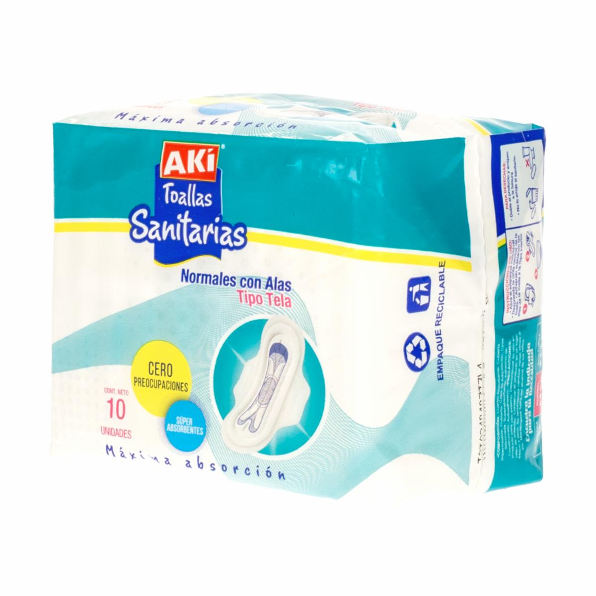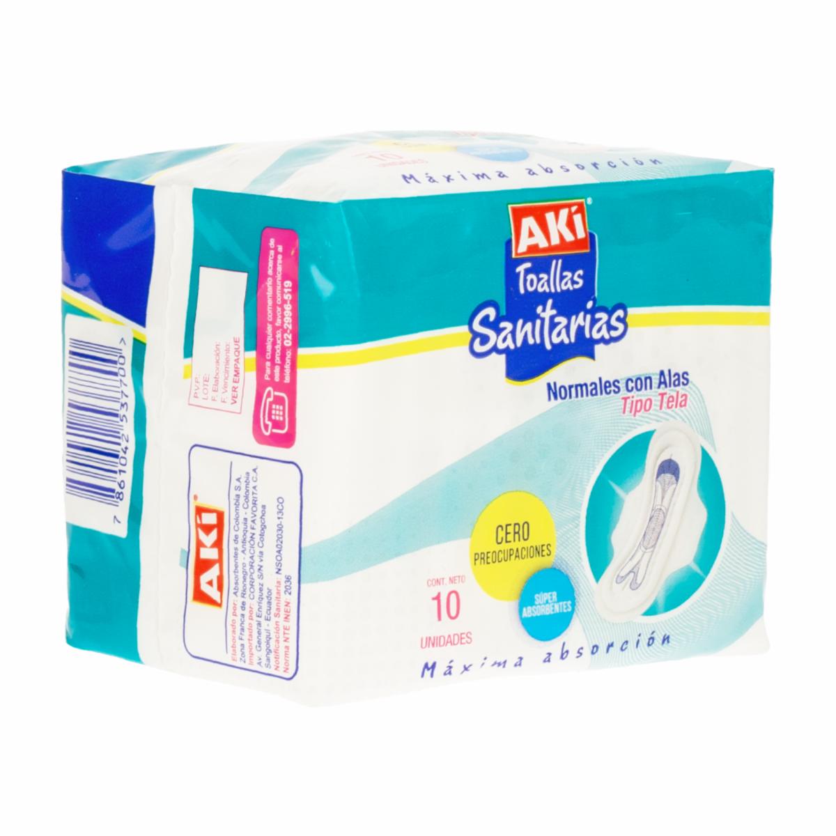 Toallas Sanitarias Normales Con Alas AKÍ X 10 Uds
