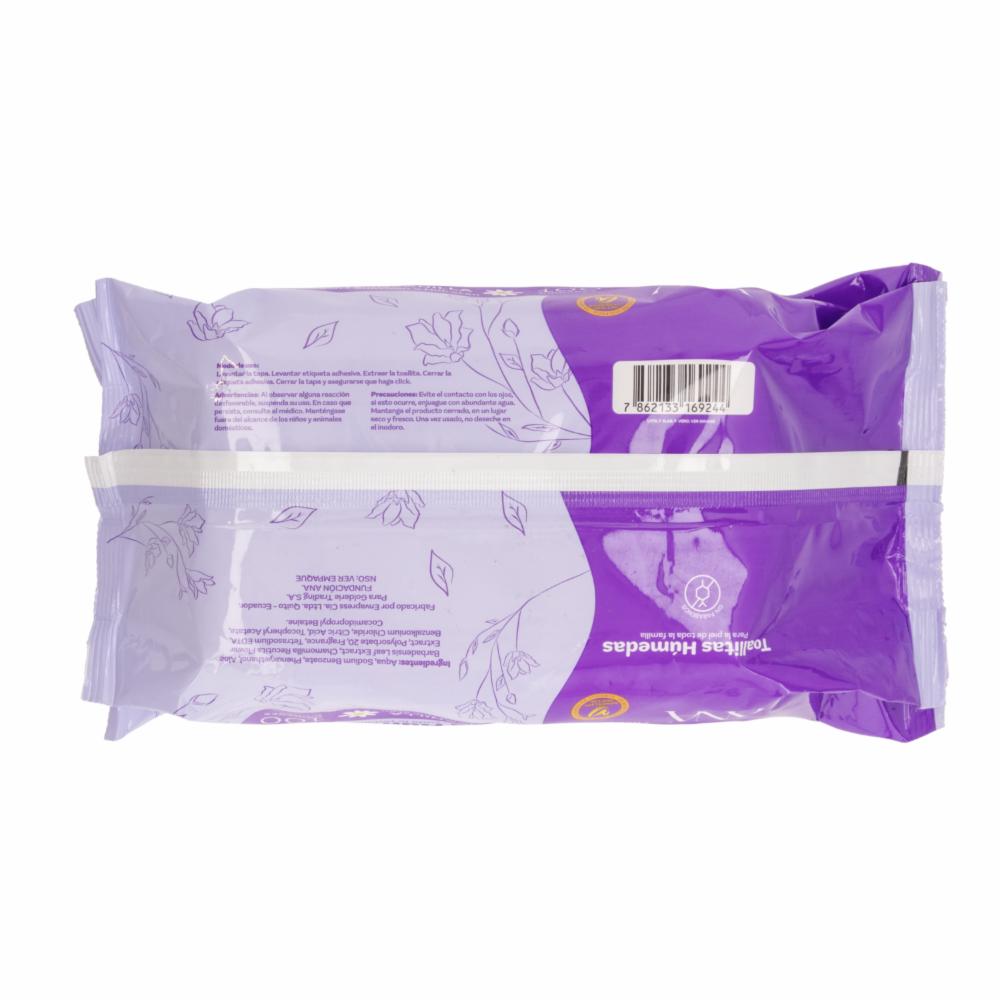 Limpian suavemente la piel, eliminando impurezas y manteniéndola hidratada. Enriquecidas con vitamina E y extracto de manzanilla, calman y protegen la piel delicada. Prácticas y seguras para uso diario en bebés y toda la familia. Al elegir ANA transformas vidas el 100%de la utilidad de este producto, apoya a la Fundación ANA, que transforma la vida de mujeres y niños del Ecuador