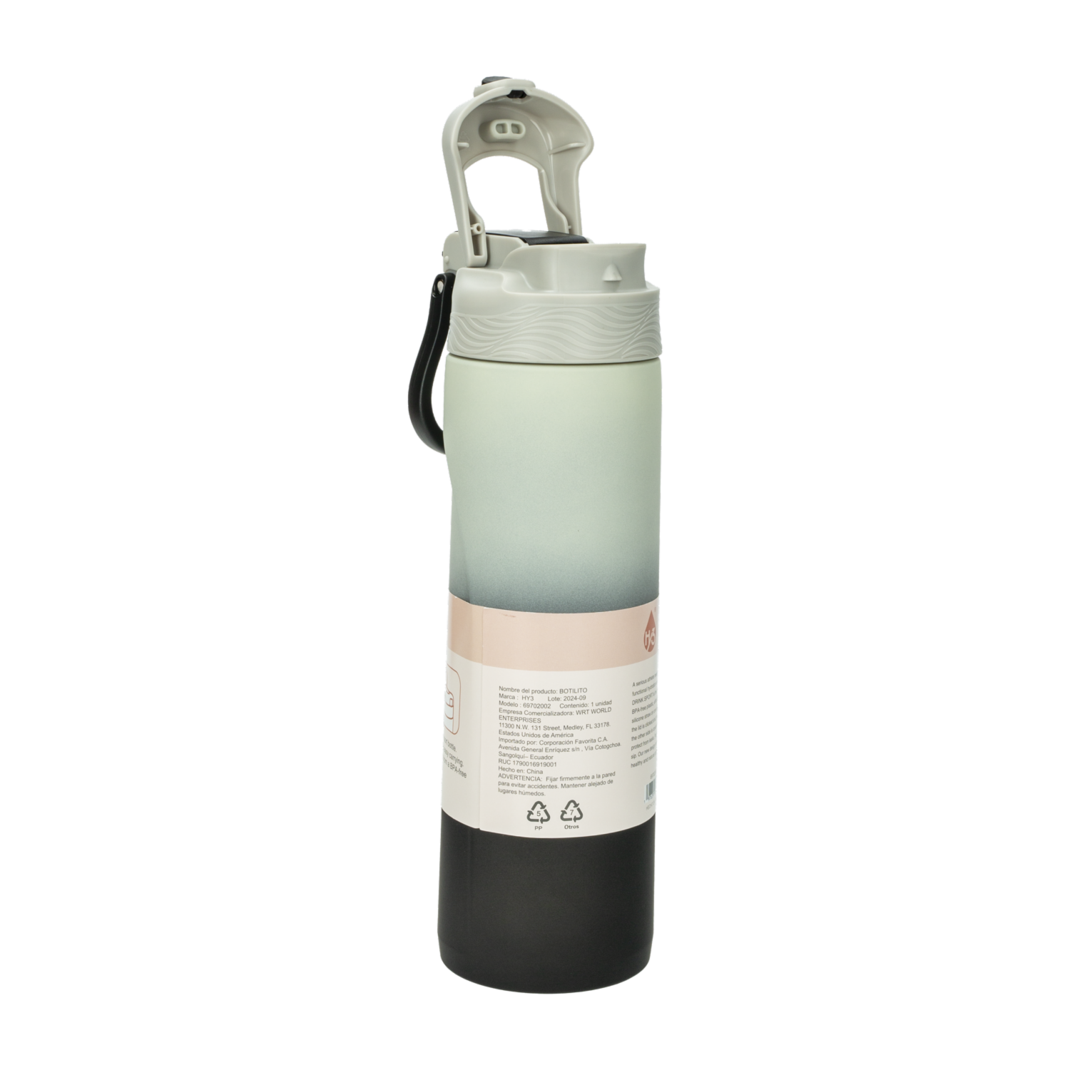 - Presiona el botón y disfruta de tu bebida en cualquier momento. Su diseño innovador hace que la actividad al aire libre sea una opción sana y natural. CARACTERÍSTICAS Diseño de doble tapa para mayor funcionalidad y seguridad. Botella deportiva sin BPA para una hidratación segura