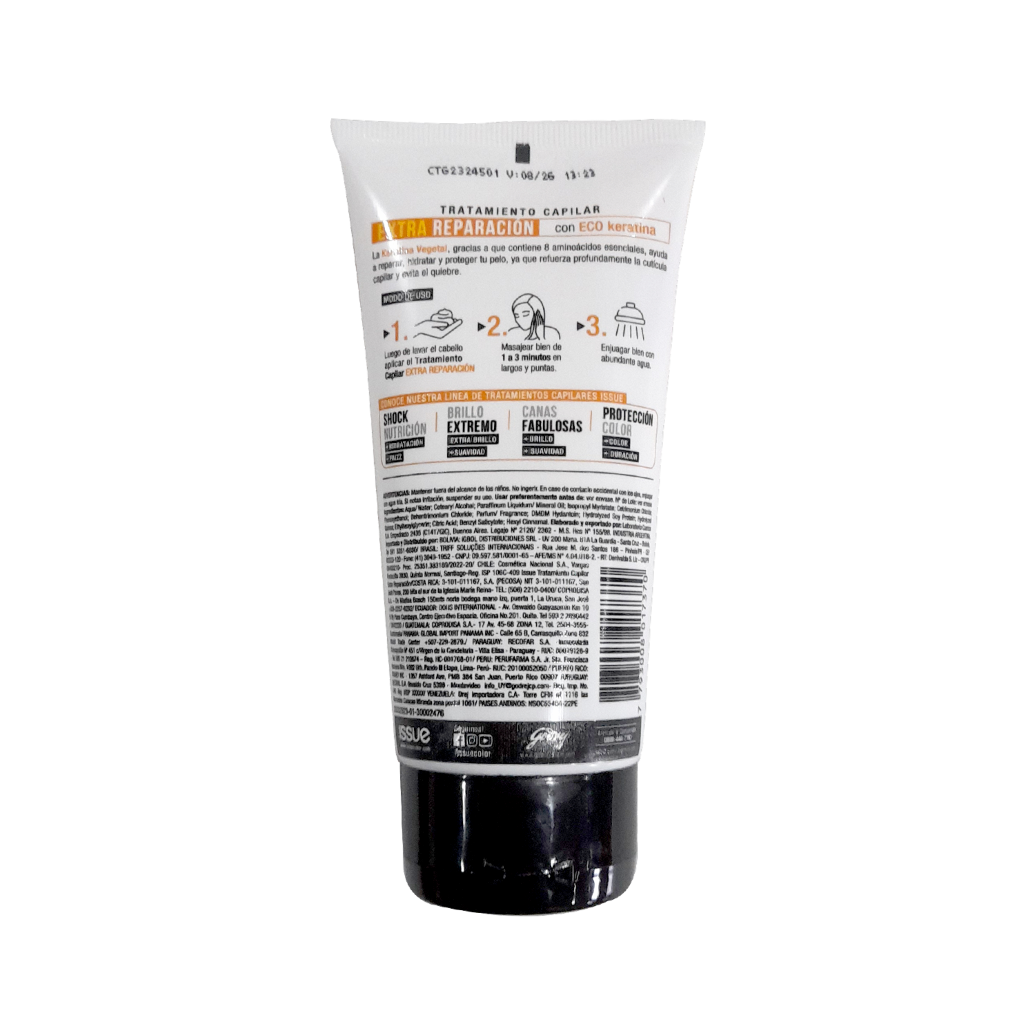 El tratamiento Issue Extra Reparacion con keratina vegetal, gracias a que contiene 8 aminoacidos escenciales, ayuda a reparar, hidratar y proteger tu pelo, ya que refuerza profundamente la cuticula capilar y evita el quiebre