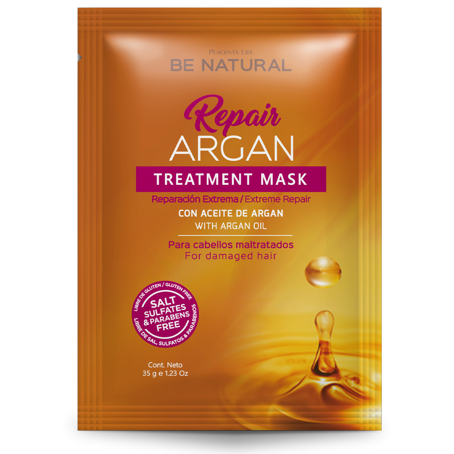 Tratamiento Capilar Reparación Extrema Con Argán BE NATURAL 35 G