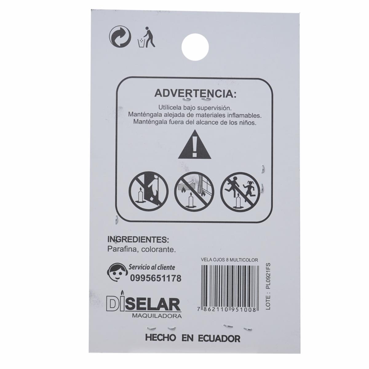 consultando preciosVela Mágica Ojos 8 Multicolor DISELAR Ojos 8 – DISELAR. Disponible en nuestros locales. Precio y stock pueden variar según la tienda.