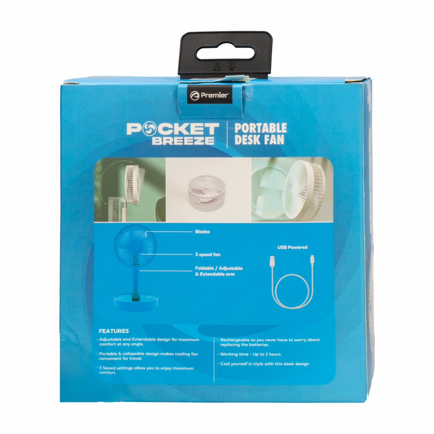 Ventilador Portátil Recargable Y Plegable PREMIER PBF04WH