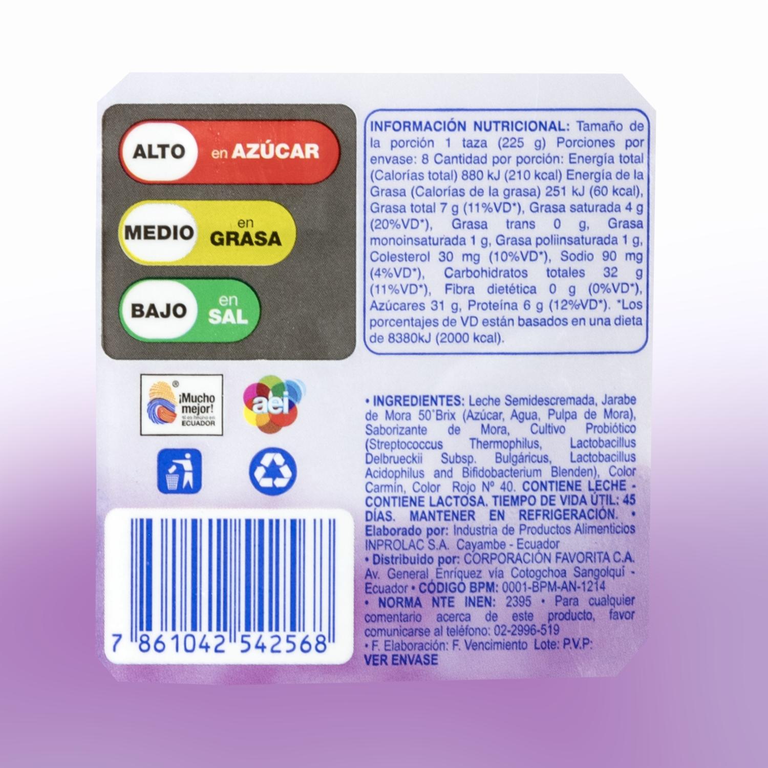 Yogurt Semidescremado Bebible Sabor A Mora AKÍ 1900 G