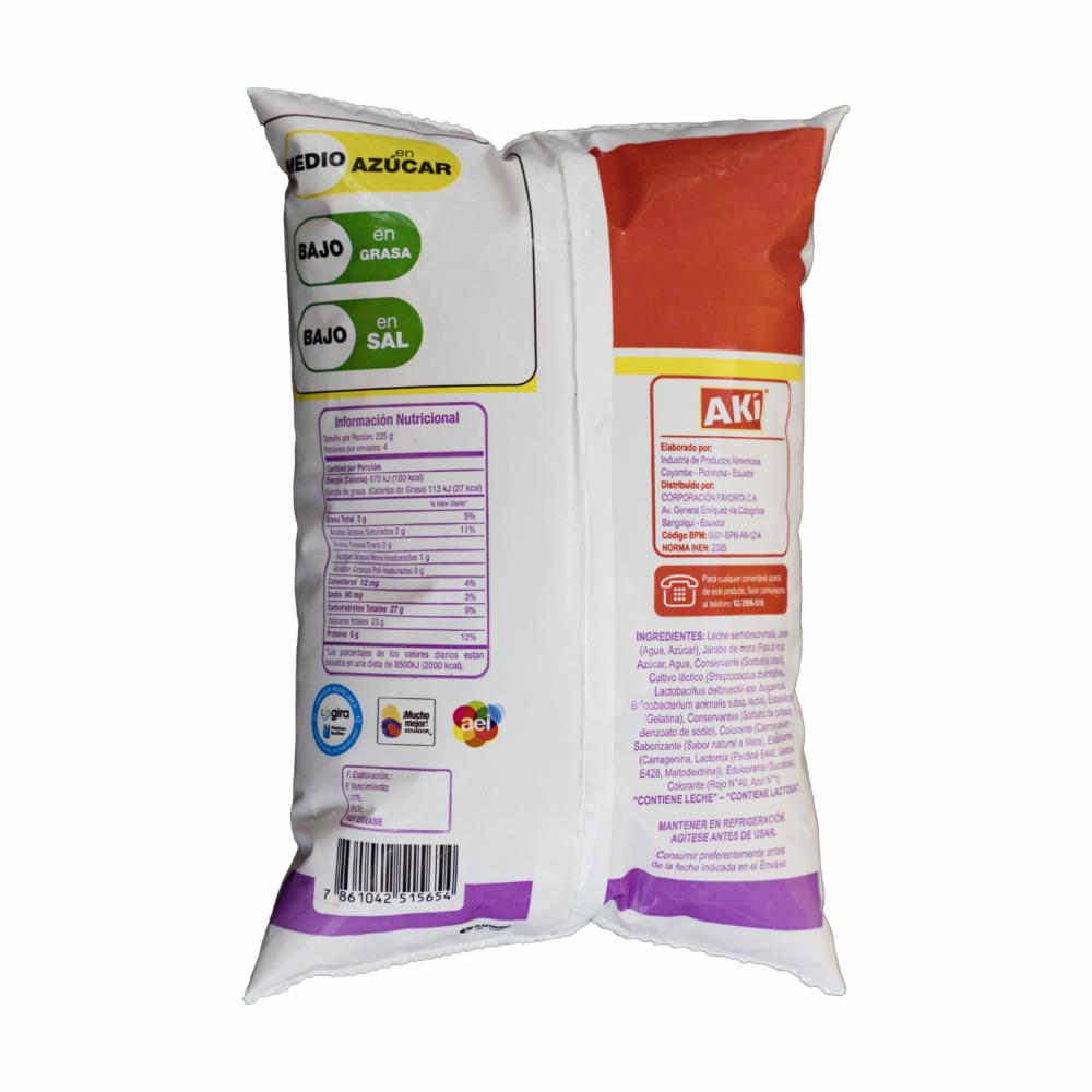 Yogurt Semidescremado Bebible Sabor A Mora En Funda AKÍ 1000 G