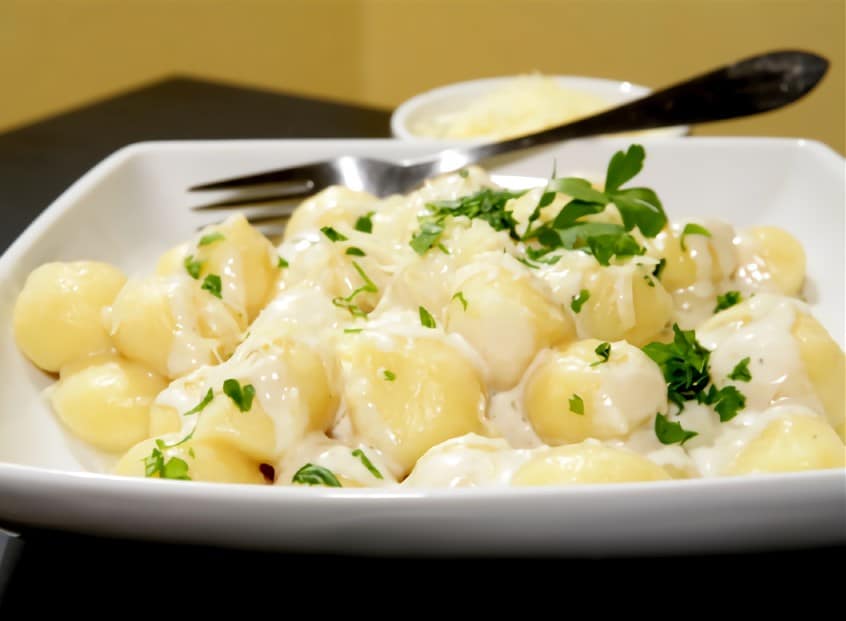 - Mezcla: En otro recipiente mezcla el queso, la leche semidescremada y la mayonesa. Espolvorea cebolla y pimienta, vierte la mezcla sobre las papas y a disfrutar. Añade perejil a tu gusto para decorar el plato.